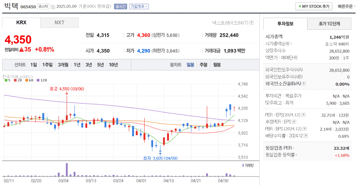 -빅텍은 군용전원공급장치, 전자광학장비, 피아식별장비 등 방위사업을 34간 영위해 왔습니다. 현재 라이다 기술 개발을 통해 군 응용환경과 해상 무인체계용 라이다를 개발 중에 있습니다. 2025년 1분기는 전년동기 대비 흑자 전환한다고 공시하였습니다. 최근 한화시스템과 164억 규모의 K2 전차 2차 사업 열상유닛 공급 계약하였습니다.