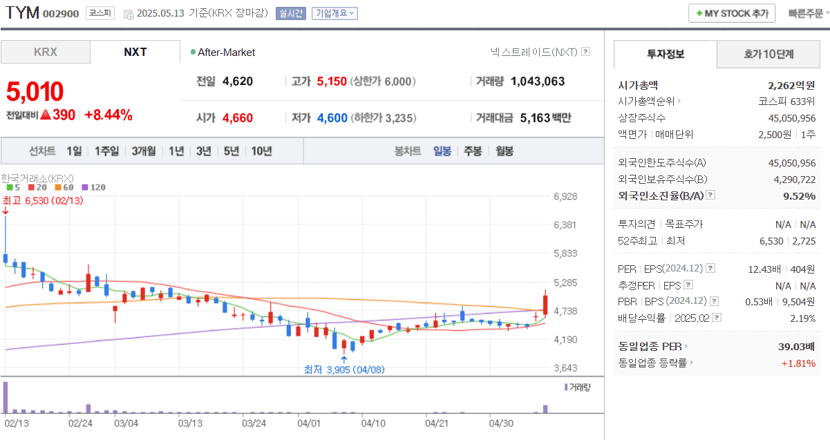 -TYM은 농기계사업과 담배필터사업을 영위 중인 기업입니다. 트랙터, 콤바인, 이앙기를 생산하고 있으며, 트랙터가 농기계 사업 매출의 75%를 차지하고 있습니다. 국내 최초 자율주행 국가형식 검사를 통과하는 등 첨단기술 개발 선두주자입니다. 최근 북미, 유럽에 법인을 설립하여 해외 진출 준비 중입니다. 우크라이나에 2024년 3회에 걸쳐 농기계 기증하여 우크라이나 재건 관련주로 부각되었습니다.